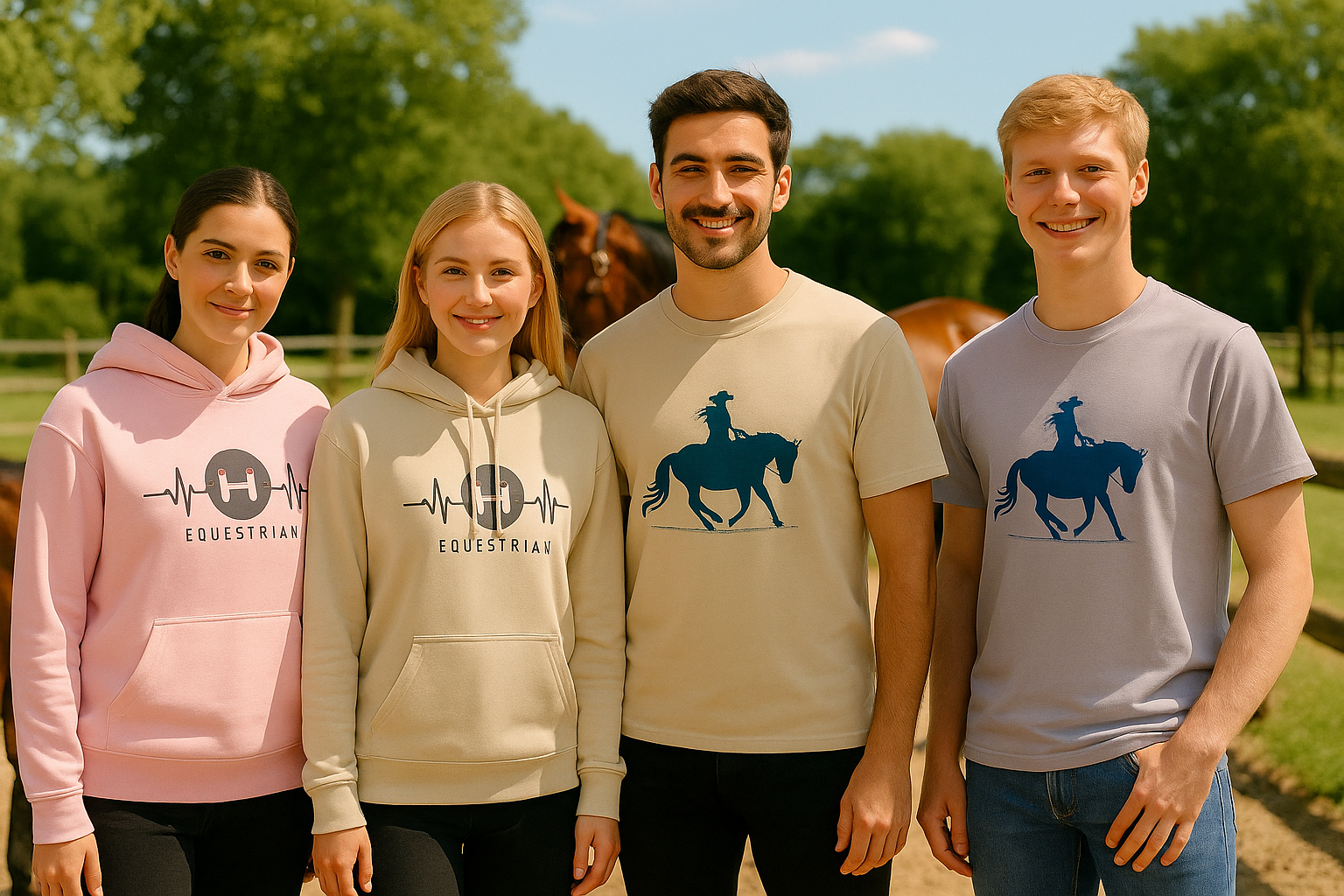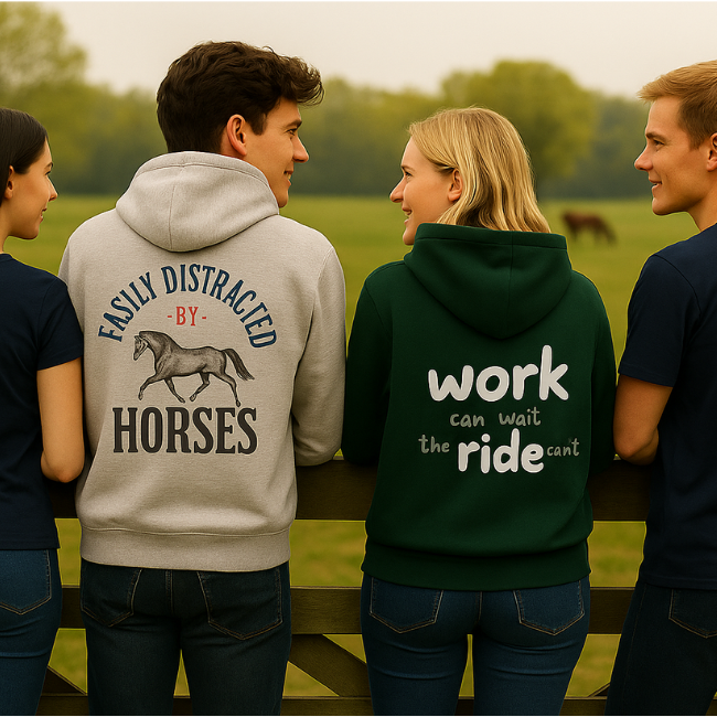 Unsere Vision ist es, Reitmode stylischer, modularer und günstiger zu machen. So kannst du dein Outfit jeden Tag wechseln - leicht waschbare Shirts und Hoodies im Kombination mit den Ansteckern fürs Pferd machen’s möglich. In deinem Kleiderschrank werden sich bald viele preiswerte Outfits statt wenigen teuren Sets befinden. In Zukunft wollen wir bei StyleSyncClub unsere Produkte ausschließlich in der EU produzieren - mit Baumwolle in Bio-Qualität und recycelten Materialien. Mit deinem Einkauf bringst du uns diesem Ziel einen Schritt näher.